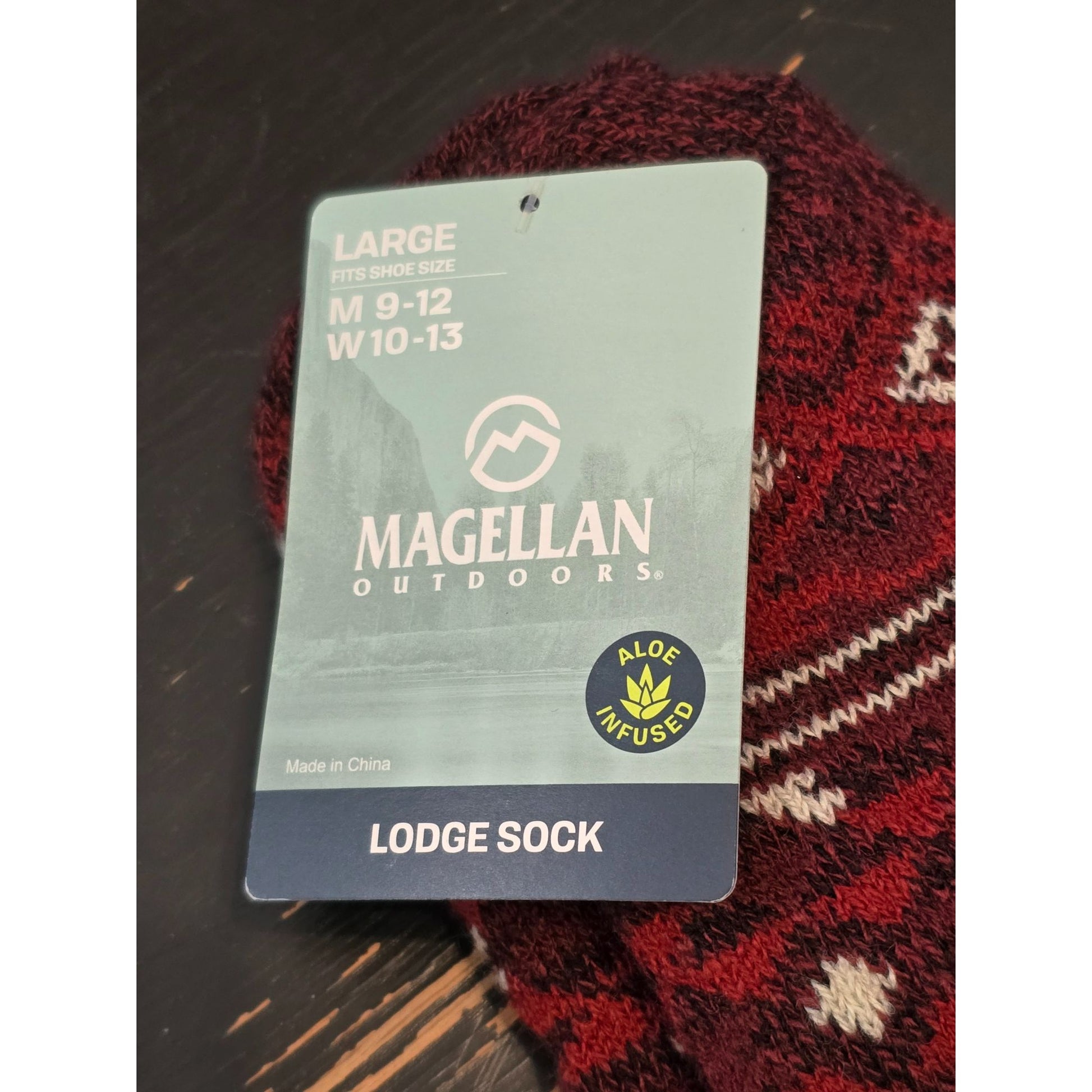 Magellan Outdoors Lodge Sock Large M 9-12 W 10-13 Aloe Infused Moose Pattern Red