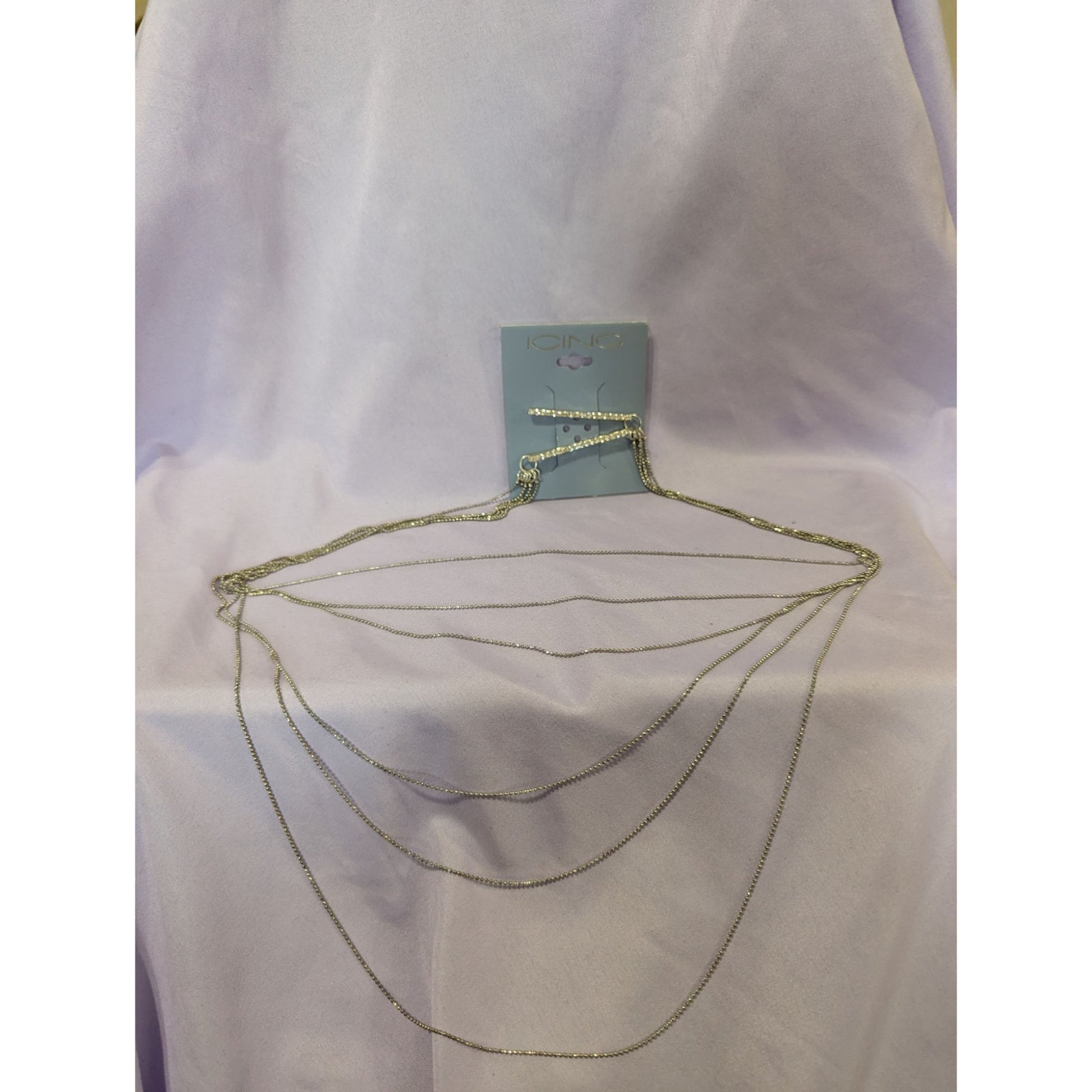 A sleek and elegant multi-layered silver hair chain designed to enhance hairstyles with a sophisticated touch. Suitable for special occasions or professional settings.