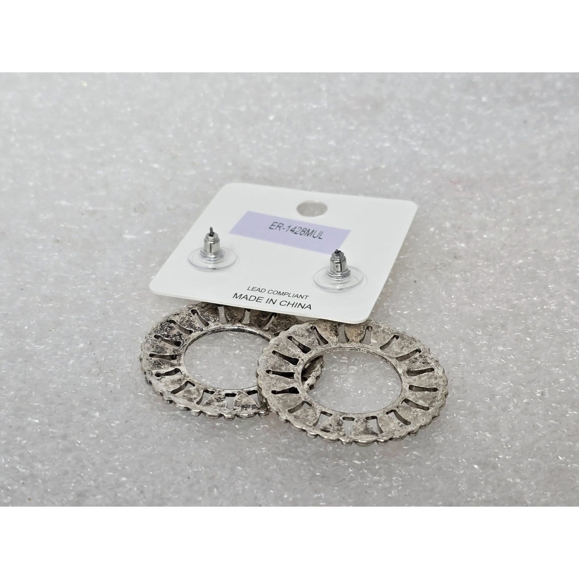 These earrings offer a vibrant touch with their multicolored faux stones set in a southwestern motif. The hoop design is complemented by matching stud attachments, providing versatility for different occasions.