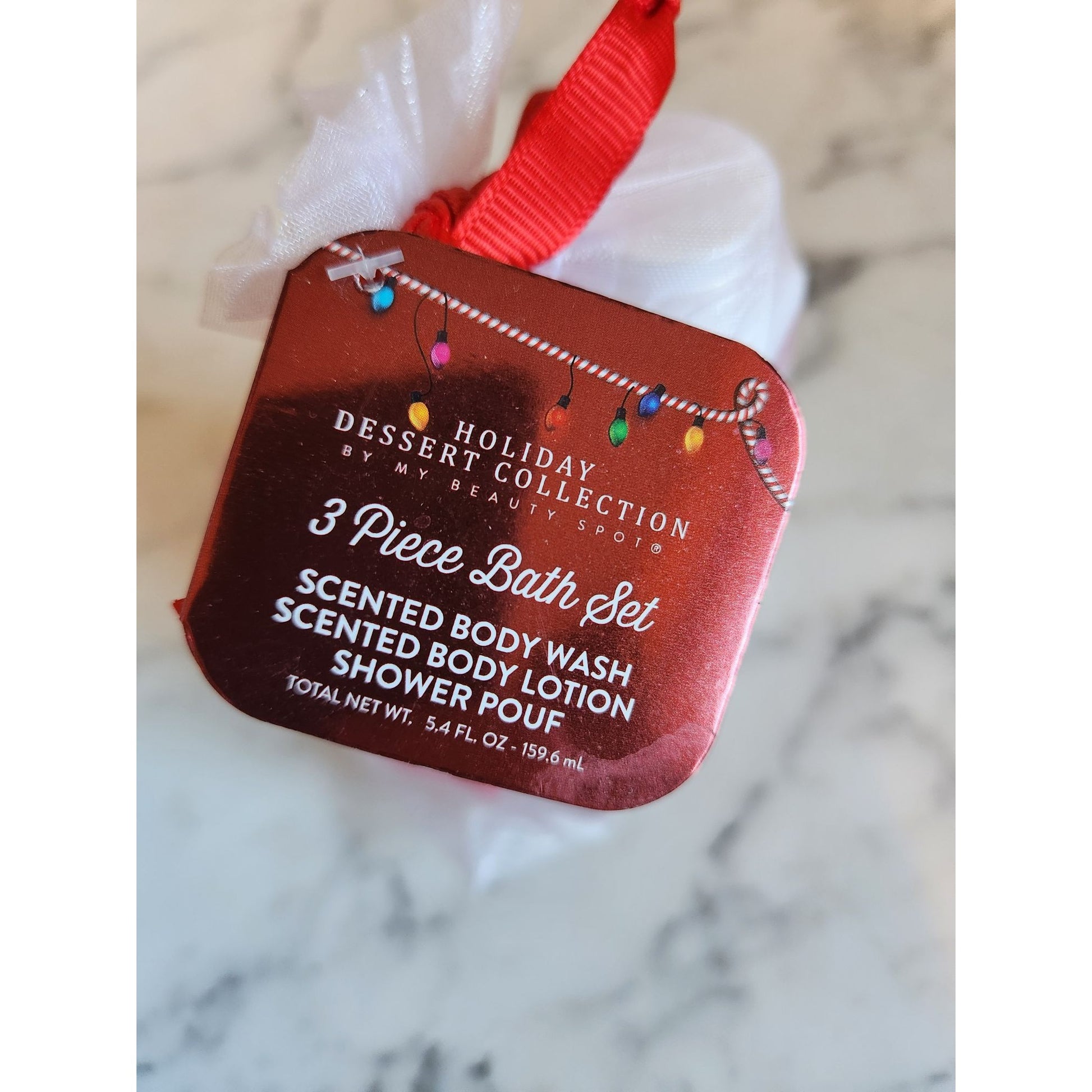 My Beauty Spot Raspberry Swirl 3-Piece Bath Set Body Wash & Lotion Shower Pouf