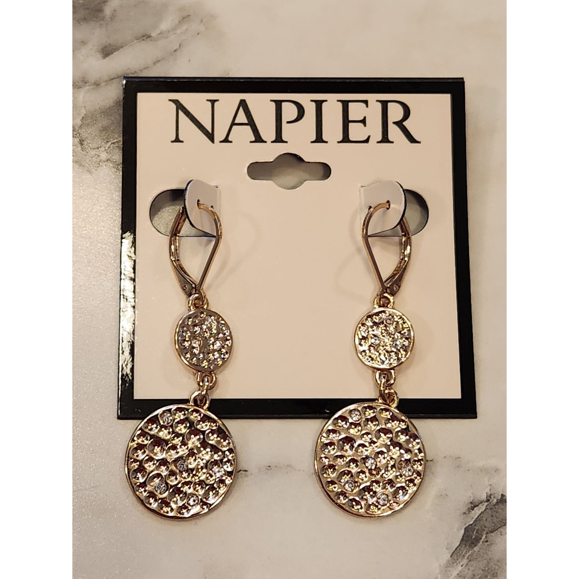 Elegant and versatile, these Napier gold-tone drop earrings feature pave crystals and a textured design. They are suitable for both casual and formal attire.