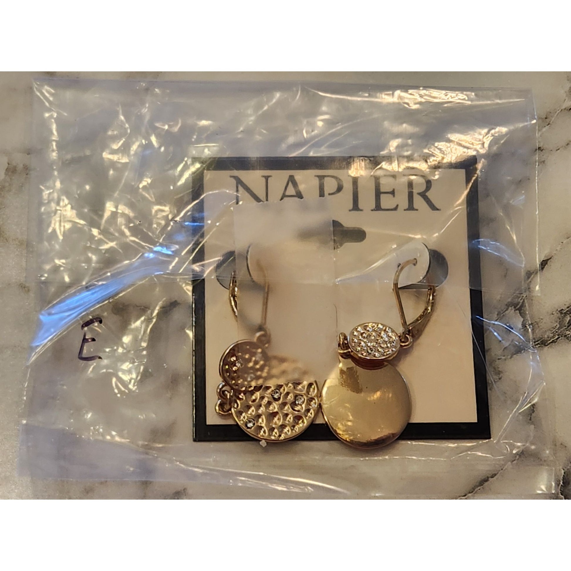 Napier Gold-Tone Drop Earrings With Pave Crystals & Textured Design