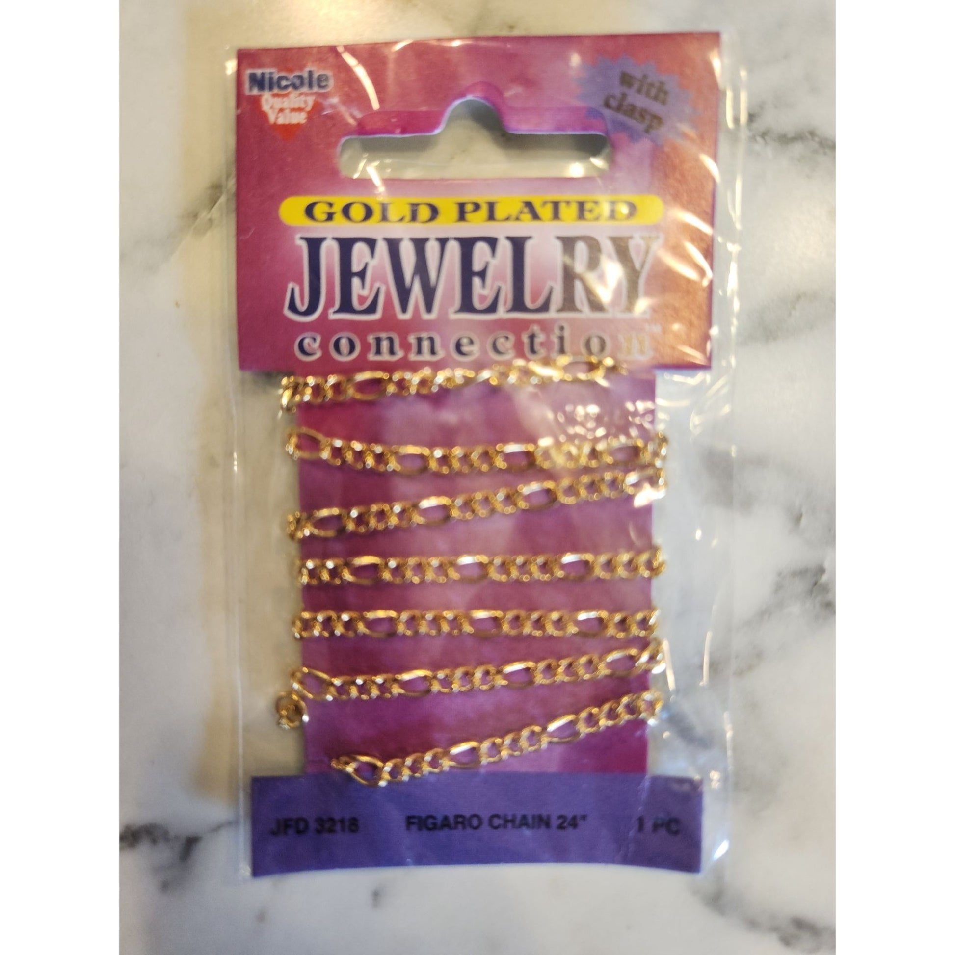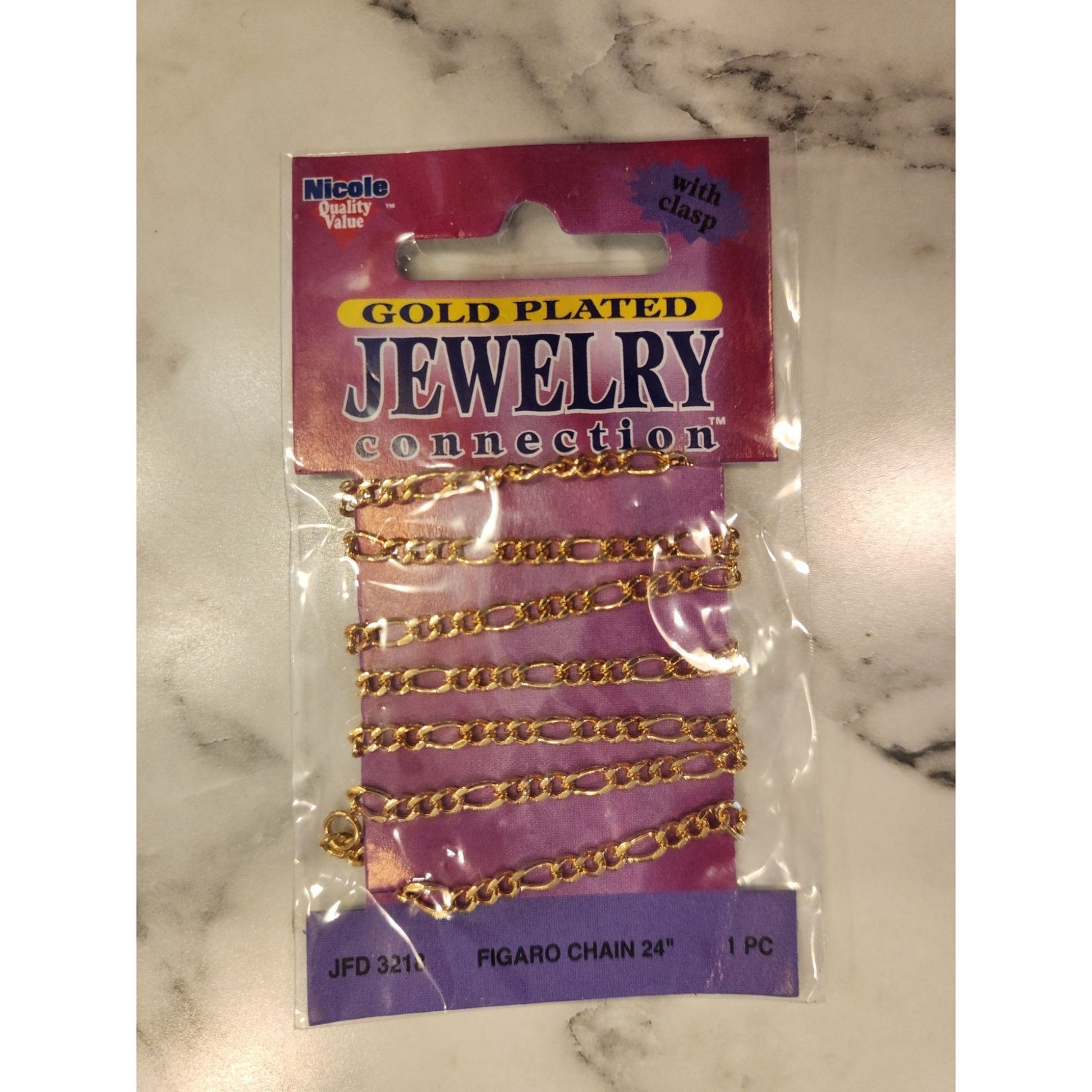 The 24-inch gold-plated Figaro chain is a classic accessory for a polished look. Its elegant design offers a versatile touch to both formal and casual outfits. The gold plating adds a refined finish, ensuring a sophisticated appeal.