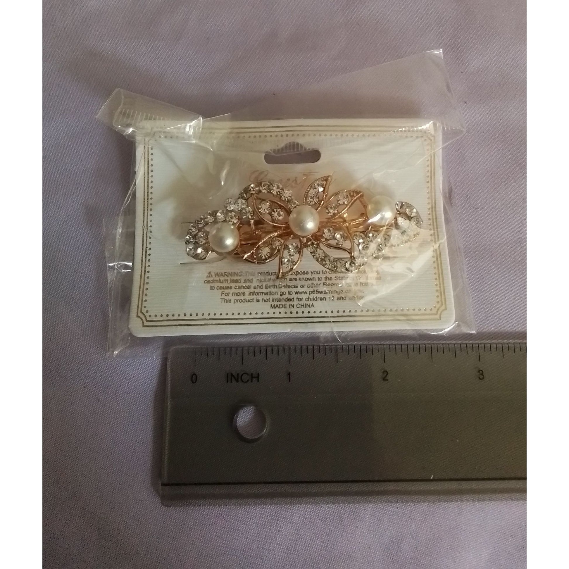 Rhinestone Crystal & Faux Pearl Flower Hair Clip Barrette Elegant Design