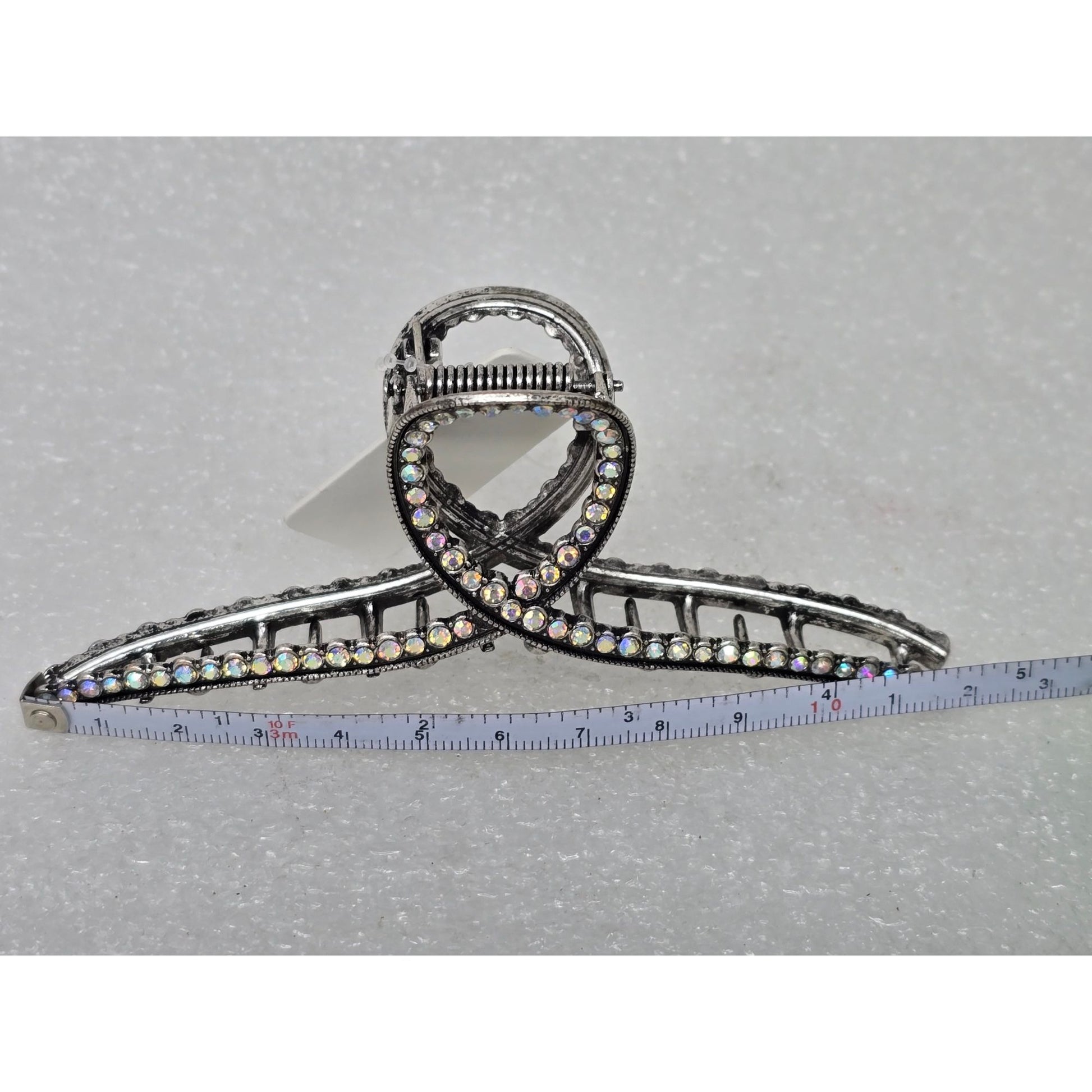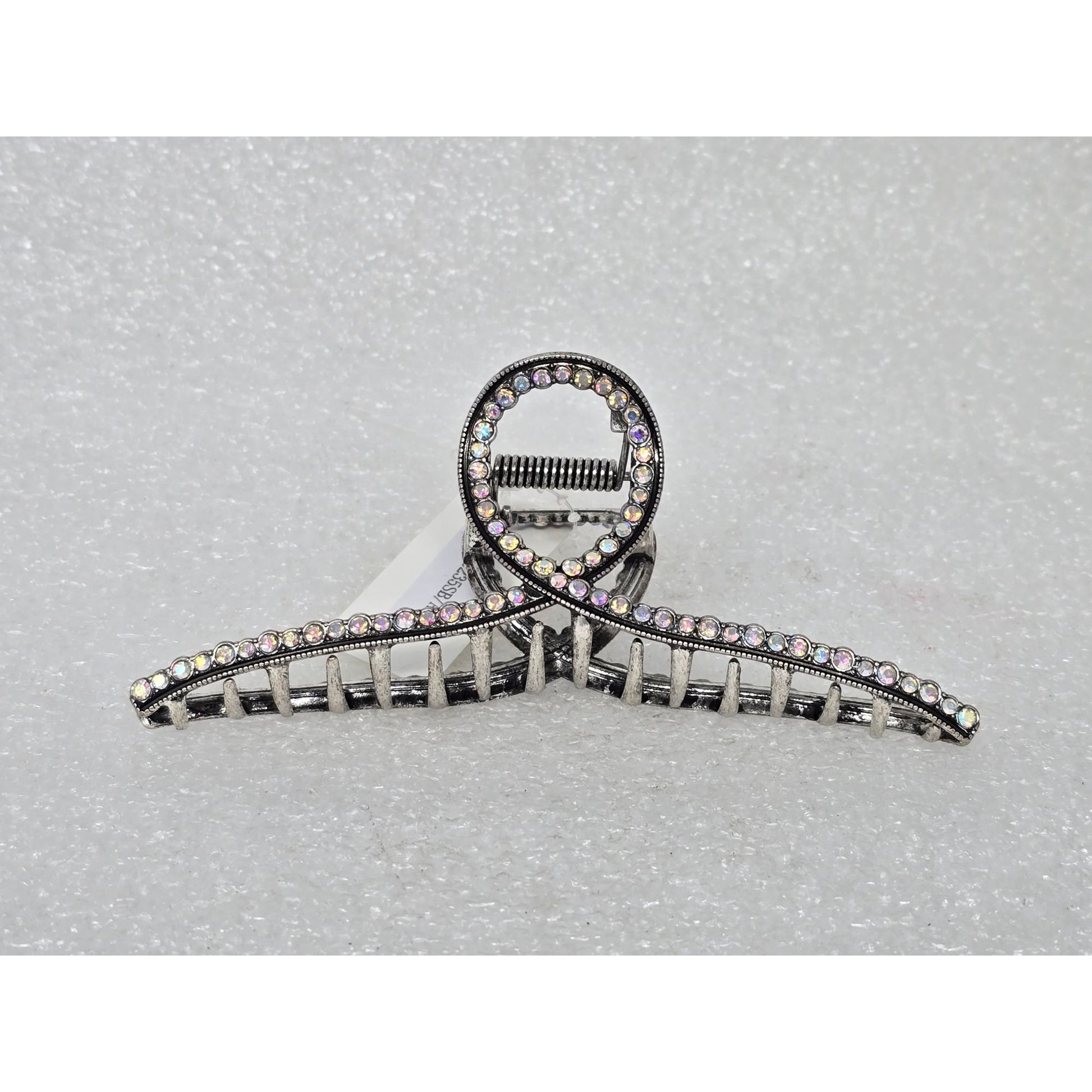 Rhinestone Embellished Silver Tone Metal Hair Claw Clip Decorative Loop Design