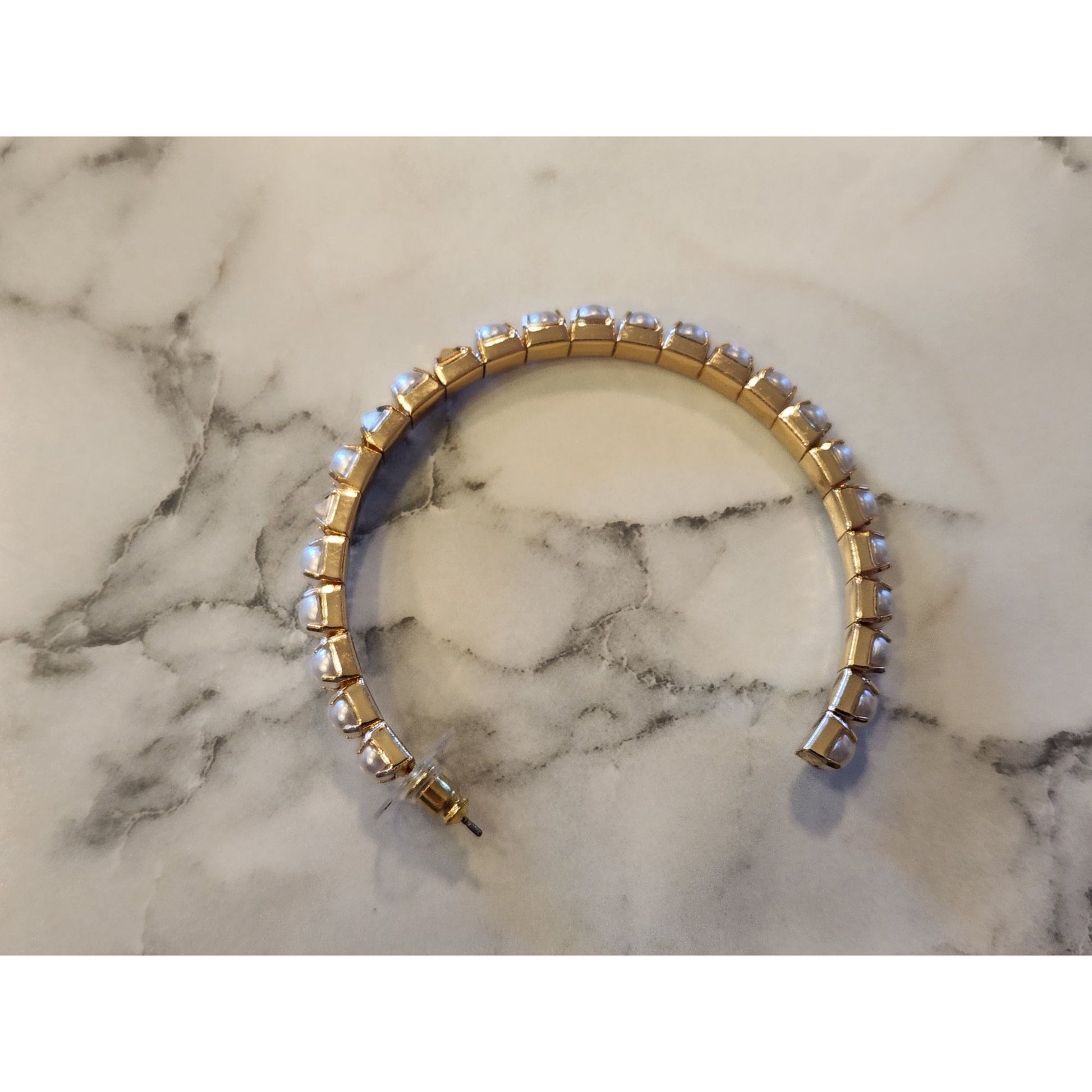 Elegant gold-tone hoop earrings with pearl embellishments, combining timeless design and modern style. Suitable for elevating formal or professional attire.