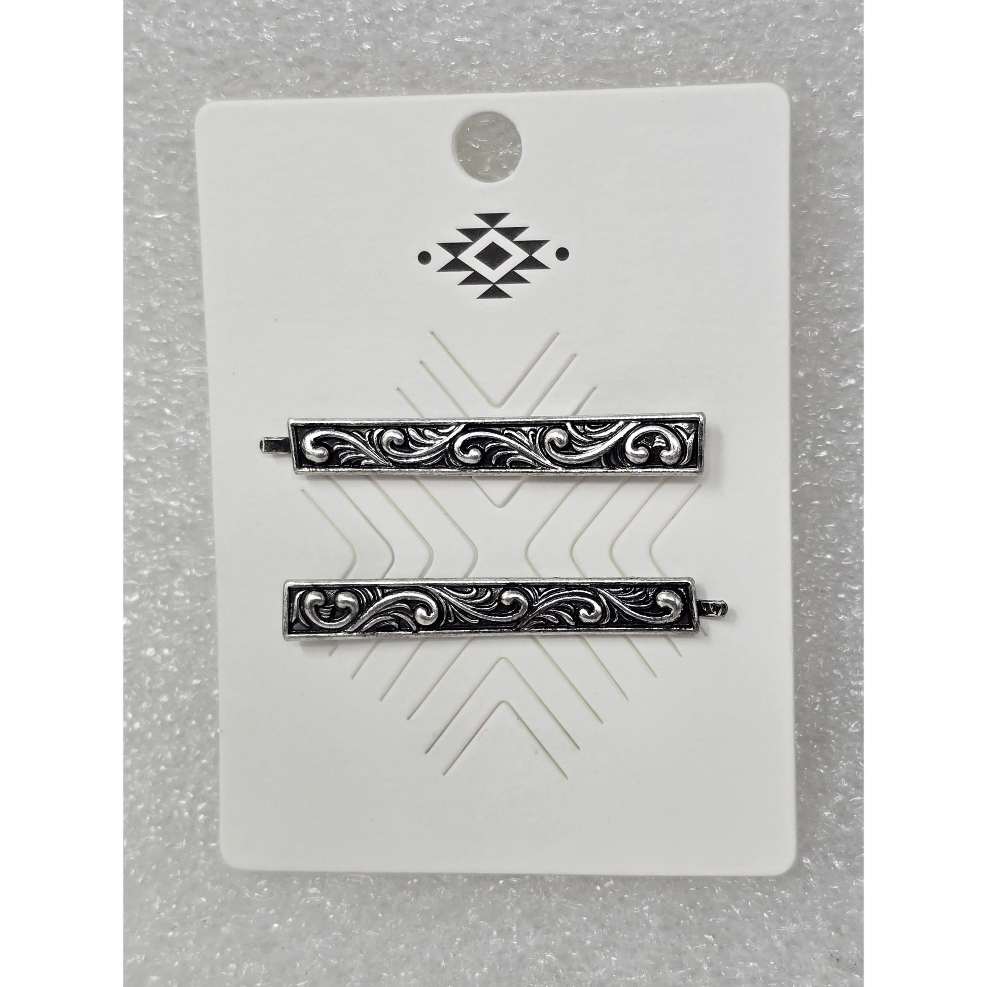 Southwestern Style Silver Tone Hair Barrettes Pins With Engraved Scroll Design