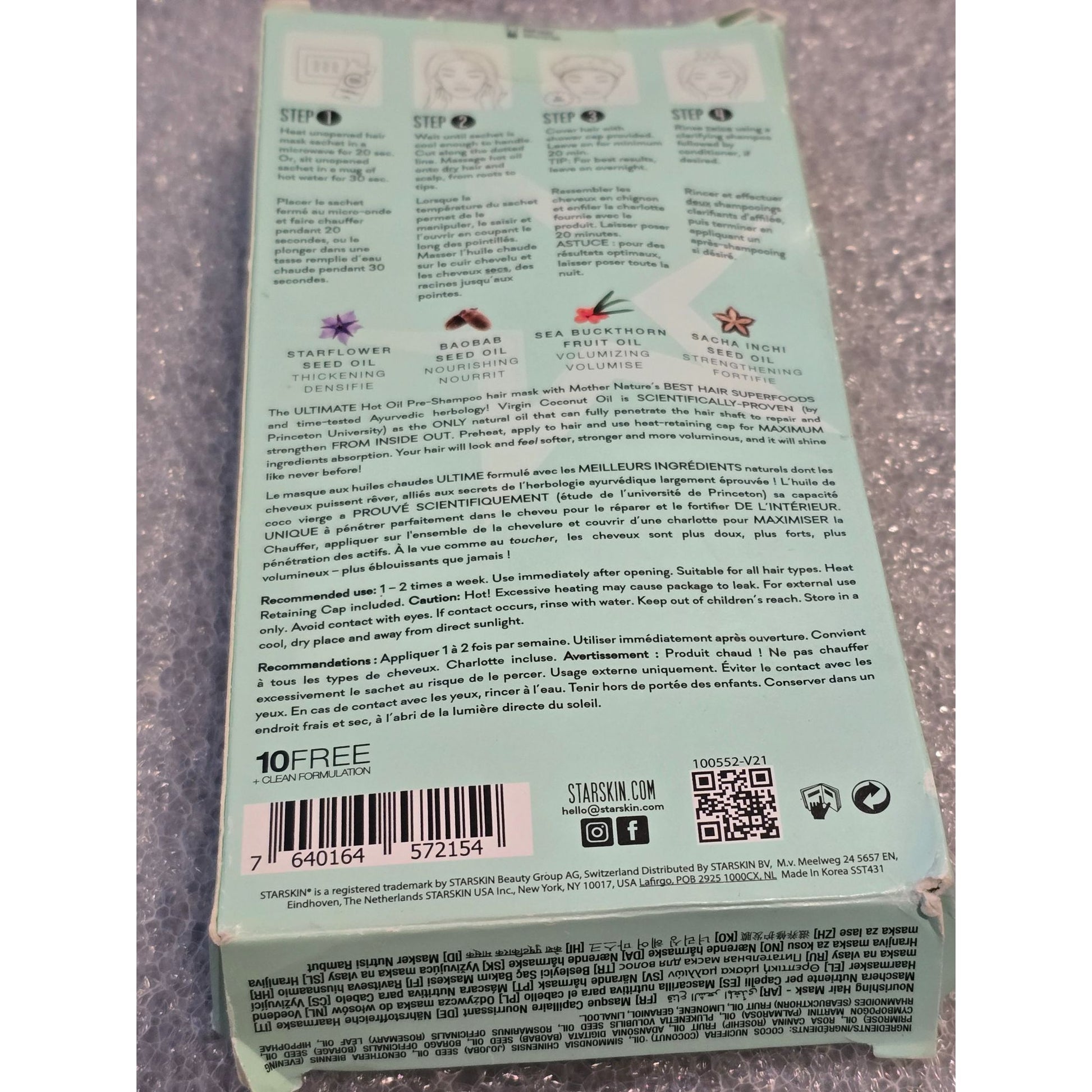 This nourishing hair mask combines organic ingredients like starflower seed oil and baobab fruit oil, formulated to hydrate and revitalize all hair types.