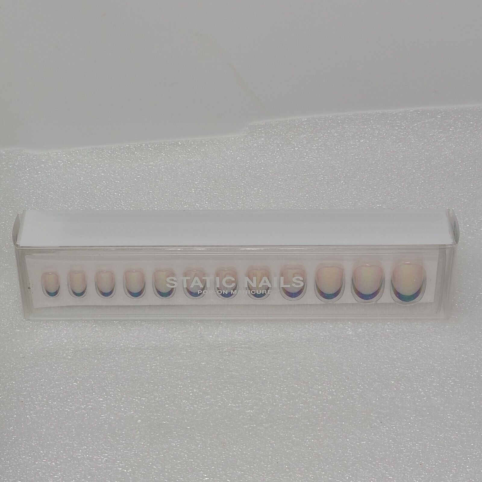 Static Nails Reusable Pop-On Manicure Holographic French Black Round