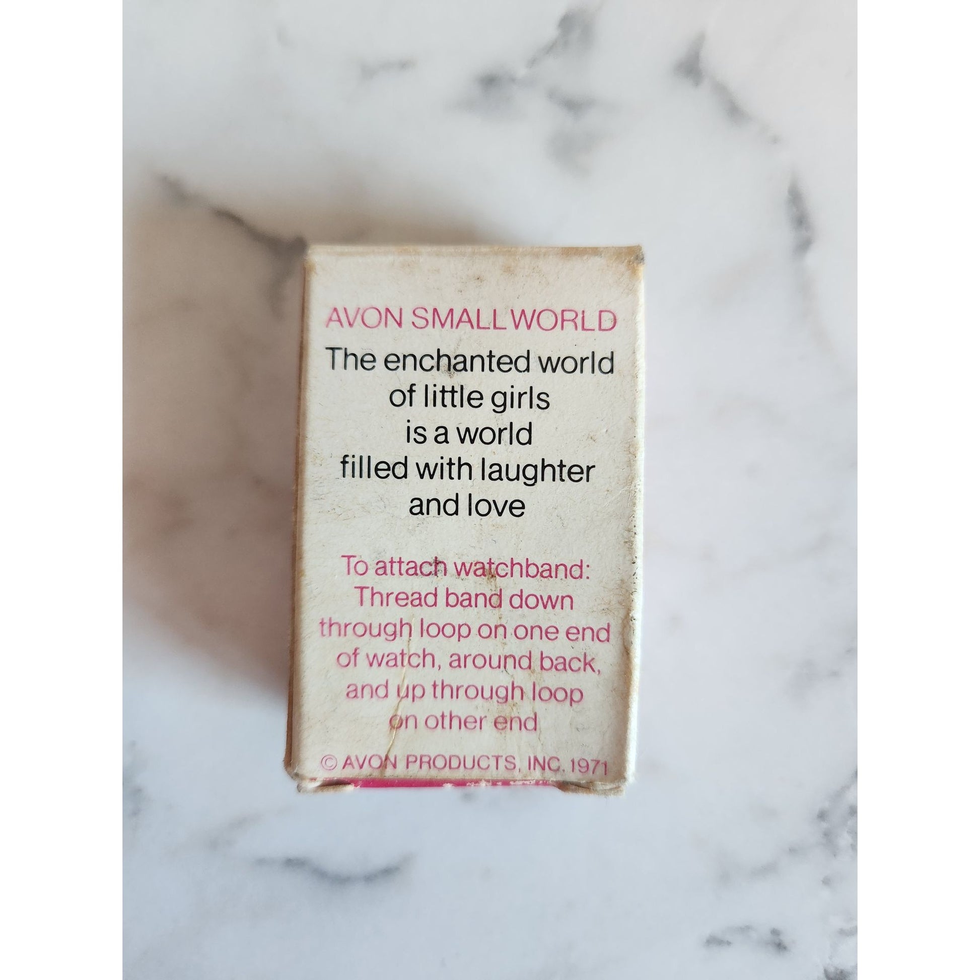 The Avon Small World Fragrance Watch Glace offers a whimsical touch with its enchanting design. Ideal for little girls, this vintage collectible combines fragrance with fun.