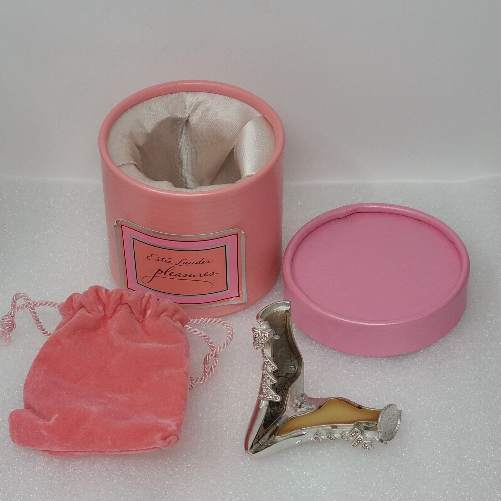 Vintage Estee Lauder Pleasures Victorian Boot Solid Perfume In Gift Bag and Original Box