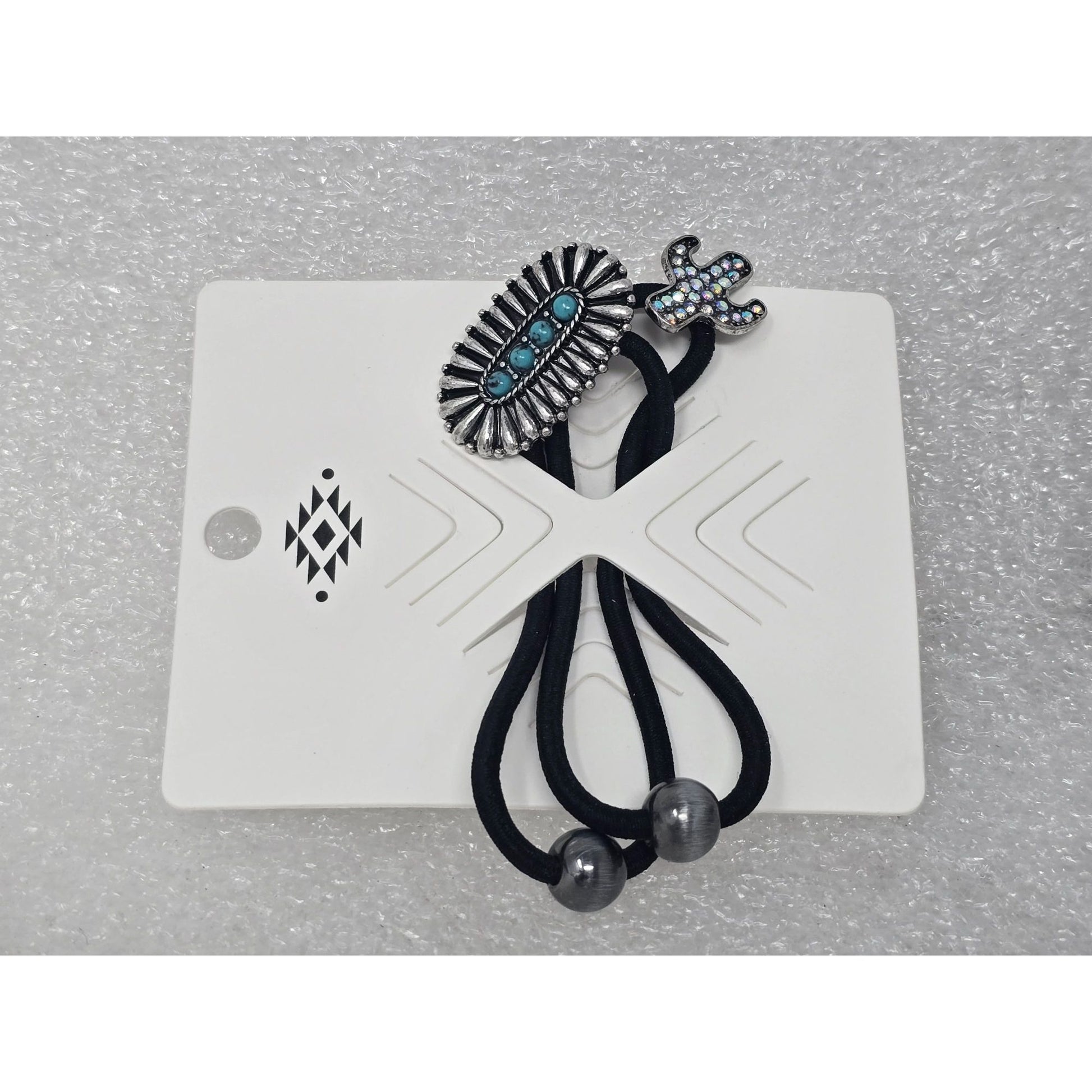 Western Style Faux Turquoise & Rhinestone Hair Ties Ponytail Holders Cactus